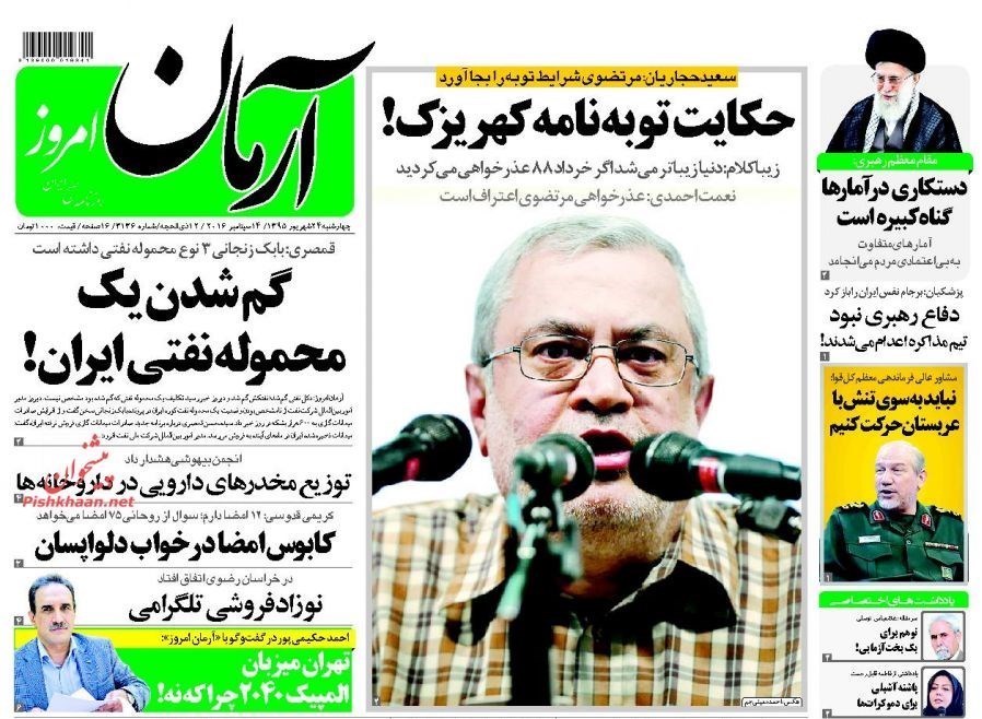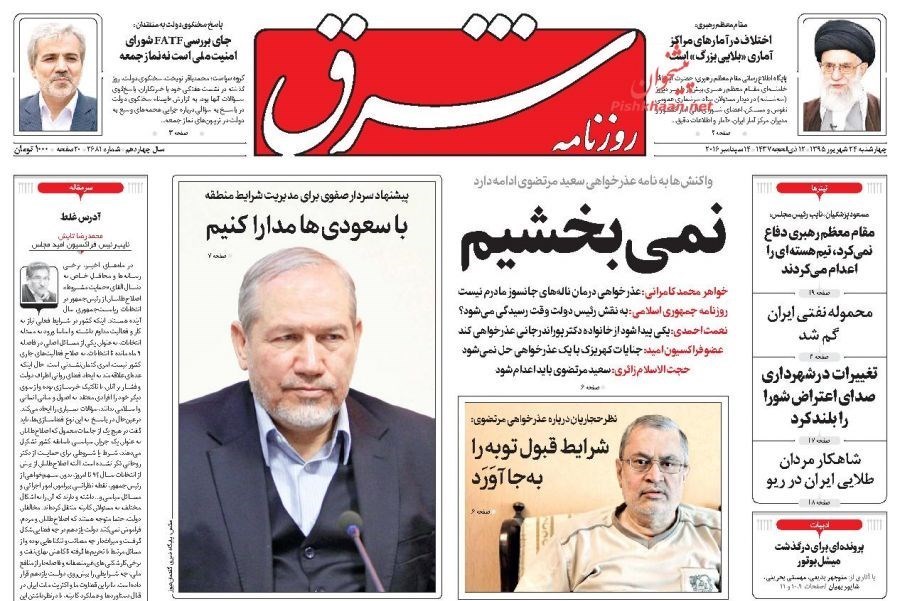 تصاویر صفحه اول روزنامه‌های چهارشنبه 24 شهریور