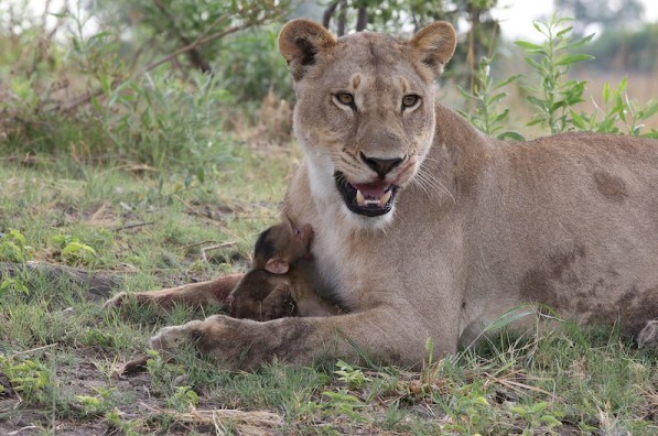 بر اساس گزارش آبزرور، شیر ماده که به قصد شکار بچه بابون به سوی او حمله ور میشود بعد از اینکه او را به چنگ میآورد از دریدن آن خودداری میکند.