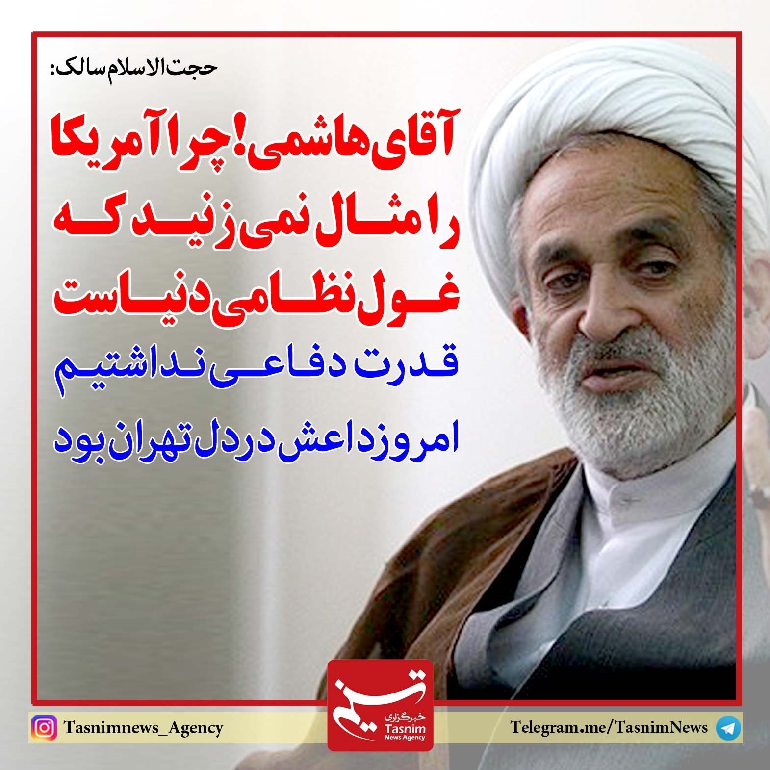 فوتوتیتر/سالک:آقای هاشمی! چرا آمریکا را مثال نمی‌زنید که غول نظامی دنیاست