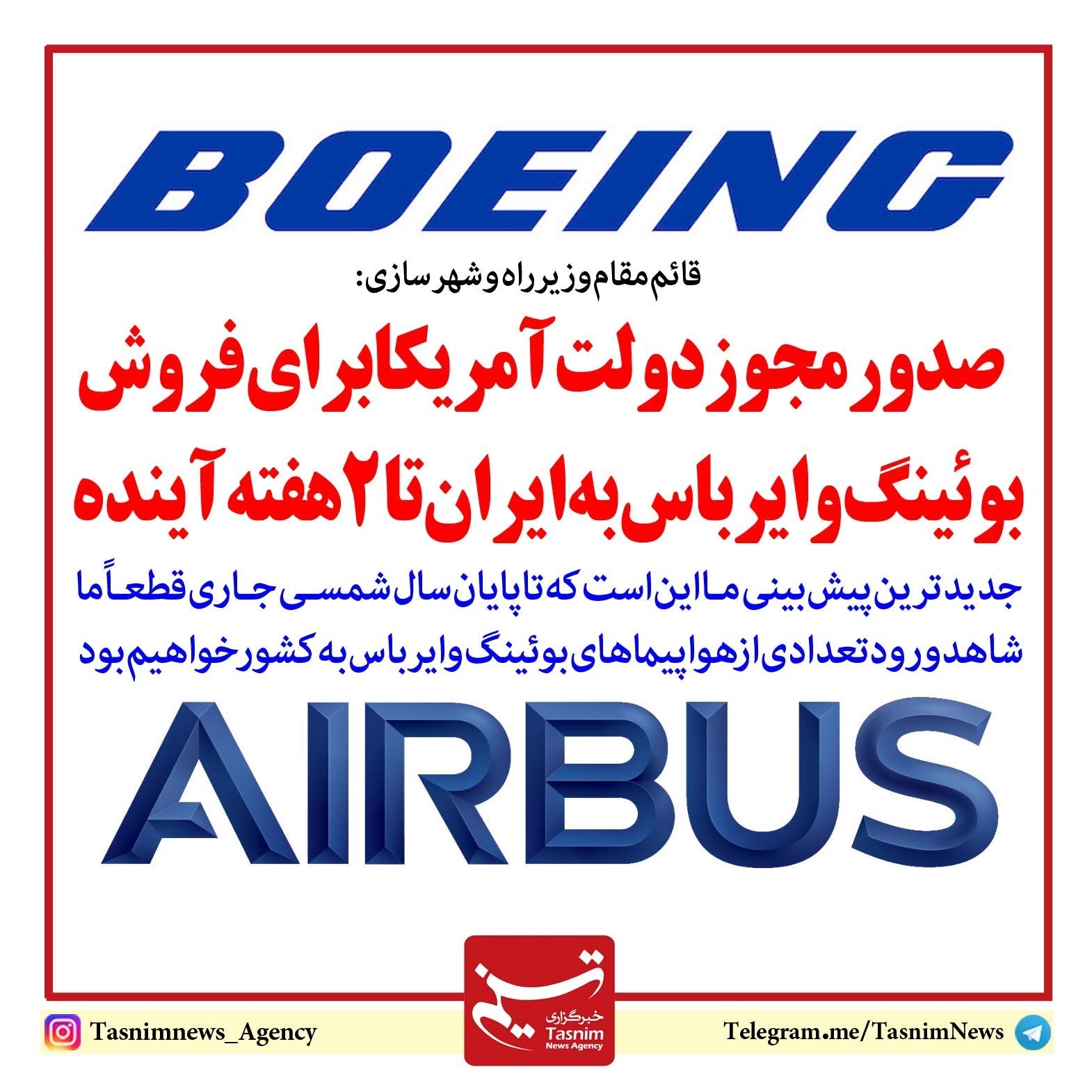 فوتوتیتر/ صدور مجوز دولت آمریکا برای فروش بوئینگ و ایرباس به ایران تا 2 هفته آینده