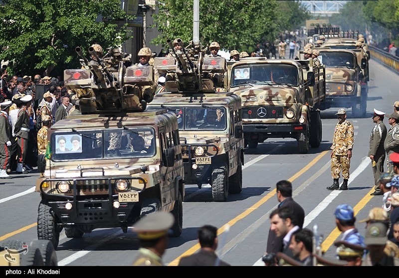 سامانه پدافند هوایی ذوالفقار، انواع موشک اندازها و خمپارهها اندازها، توپهای خودکششی در رژه امروز به نمایش گذاشته شدند.