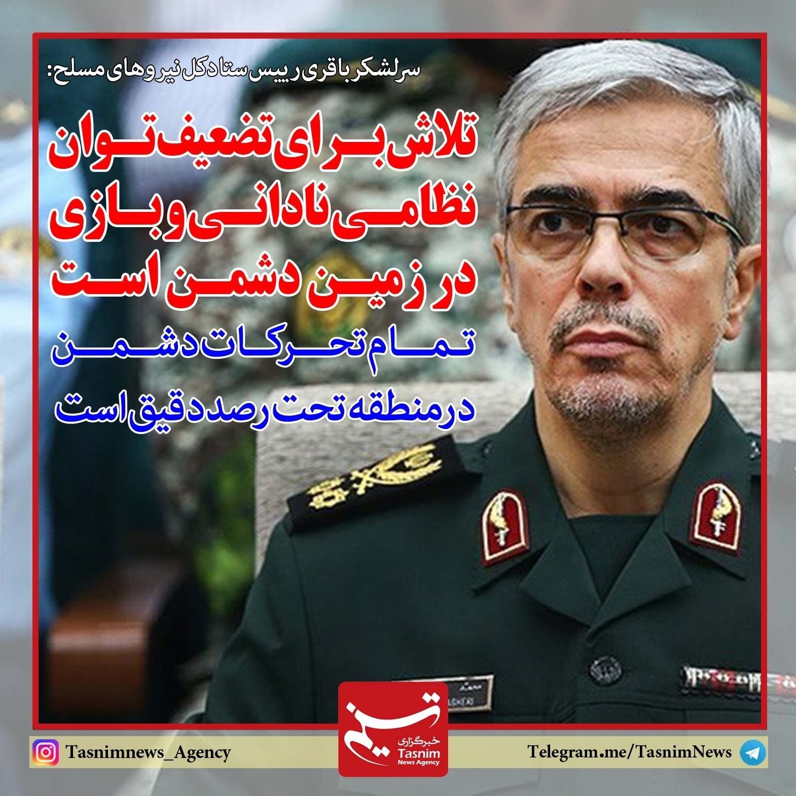 فوتوتیتر/سرلشکر باقری:تلاش برای تضعیف توان نظامی "نادانی و بازی در زمین دشمن" است