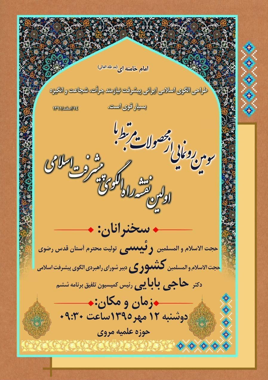 شایان ذکر است اولین نقشه الگوی اسلامی ایرانی پیشرفت به بیش از صد سؤال اساسی در حوزه اداره جامعه با نگاه دینی جواب می‌دهد.