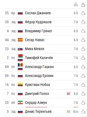 سردار آزمون، مهاجم روستوف 90 دقیقه در این بازی حضور داشت و بارها دروازه تیم مطرح مسکویی را تهدید کرد، اما پایش به گل باز نشد. خبرگزاری ورزشی چمپیونات روسیه در ارزیابی فنی عملکرد بازیکنان دو تیم روستوف و لوکوموتیو نمره خوب 7 را به سردار آزمون اختصاص داد. دمیتری پولوز، مهاجم روسی تیم روستوف با دریافت نمره 8 به عنوان بهترین بازیکن برگزیده شد.