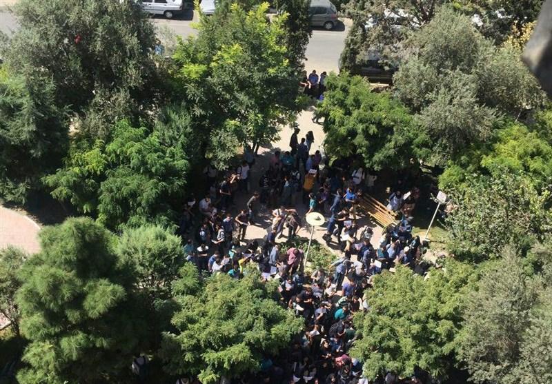 «تجمع دانشجویان دانشگاه شهید بهشتی در اعتراض به کمبود فضای کافی در خوابگاهها برای اسکان دانشجویان»