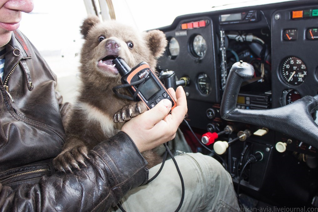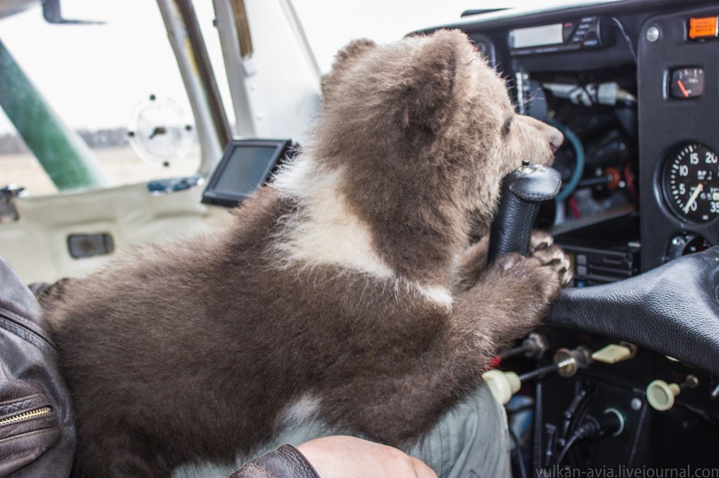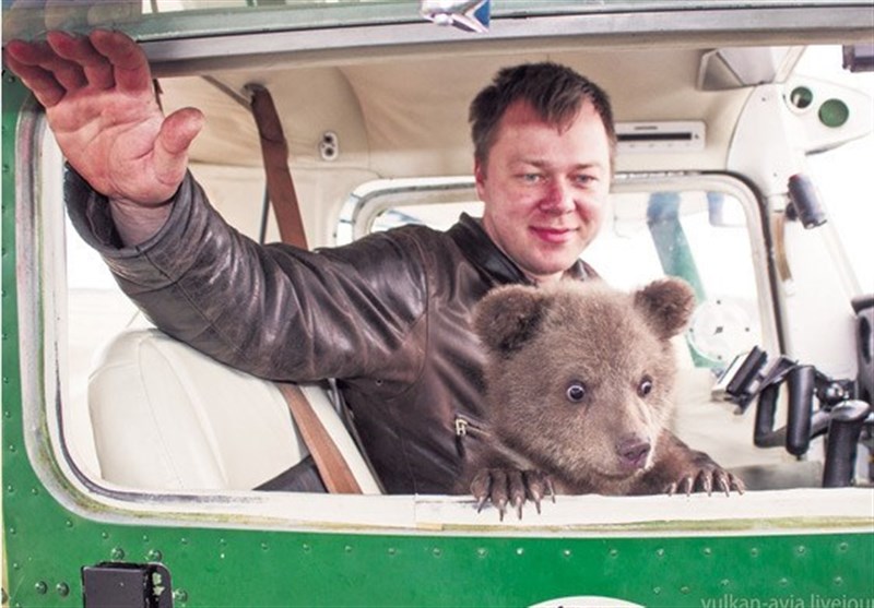 بر اساس گزارش آرتی، این توله خرس که از فصل بهار سال جاری به دلیل از دست دادن مادرش یتیم شده است علاقه وافری به خلبانی و پرواز با هواپیما نشان میدهد.