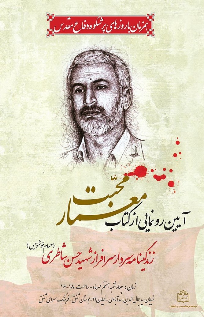 به گزارش خبرگزاری تسنیم، آئین رونمایی از کتاب «معمار محبت»، زندگینامه سردار سرافزار شهید حسن شاطری (حسام خوشنویس) فردا، چهارشنبه با سخنرانی اسماعیل احمدیمقدم فرمانده سابق نیروی انتظامی، شیخ علی ضاهر از مسئولین حزب الله لبنان و مدیر مؤسسه رسالات لبنان، حجتالاسلام والمسلمین روحالله حسینیان، رئیس مرکز اسناد انقلاب اسلامی برگزار میشود.