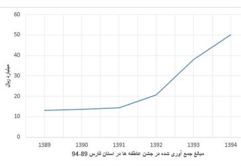 بر اساس آمار کمیته امداد امام خمینی (ره) سال 90 مبلغ 13.6 میلیارد ریال کمک جمعآوری شده که 7.5 میلیارد توسط خیران و مابقی از صندوقهای مردمی جمعآوری شد. در سال 91 مبلغ 14.5 میلیارد ریال و سال 92 مبلغ 20.6 میلیارد ریال در جشن عاطفهها در استان فارس جمعآوری شده است.