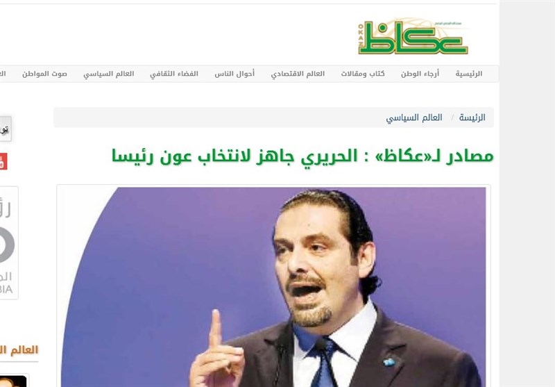 خبر امروز عکاظ در حالی است که این رسانه سعودی خبر روز گذشته خود مبنی بر تصمیم سعدالحریری برای موافقت با نامزدی میشل عنوان را یک زلزله سیاسی توصیف کرده بود.