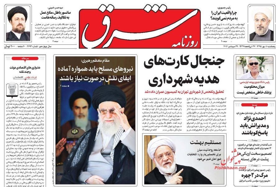 تصاویر صفحه اول روزنامه‌های پنجشنبه 8 مهر