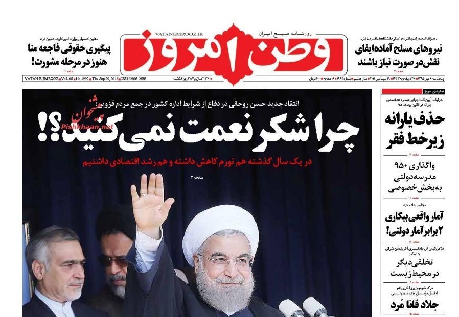 به گزارش گروه رسانه‌های خبرگزاری تسنیم، تصاویر صفحات نخست روزنامه‌های کشور امروزپنجشنبه 8 مهر به‌شرح زیر منتشر می‌شود: