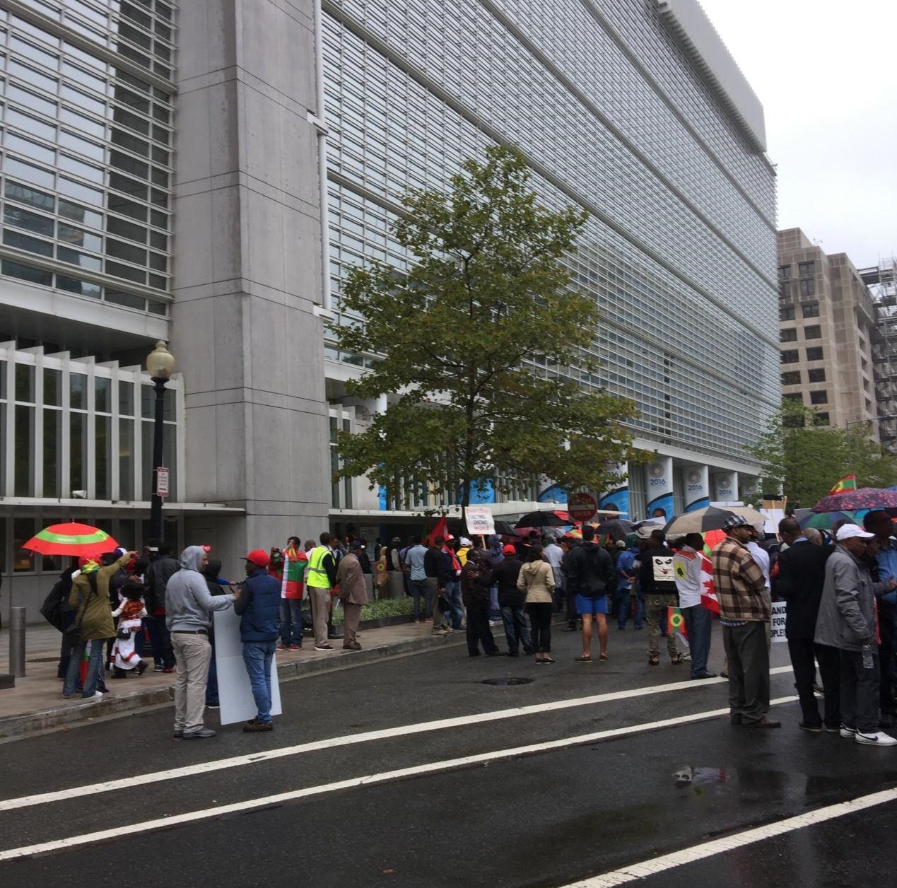 به گزارش خبرنگار خبرگزاری تسنیم از واشنگتن، بیش از 700 نفر از اتباع کشور اتیوپی روز پنجشنبه مقابل ساختمان بانک جهانی در واشنگتن تجمع کرده و علیه سیاستهای اقتصادی دولت آمریکا و حمایت ایالات متحده از رئیسجمهوری اتیپوی تظاهرات کردند. معترضان به کشته شدن هموطنان خود و سیاستهای سرکوبگرانه رئیسجمهوری اتیپوی به شدت اعتراض داشته و تاکید داشتند که دولت اوباما از دولت اتیوپی حمایت میکند.