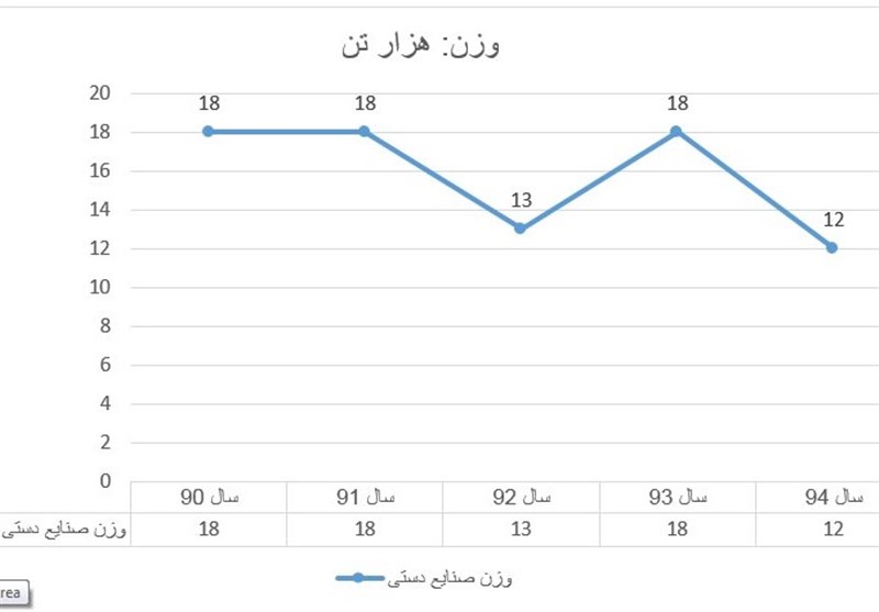میزان صادرات صنایع دستی بین سالهای 90 -94 به میلیون دلار
