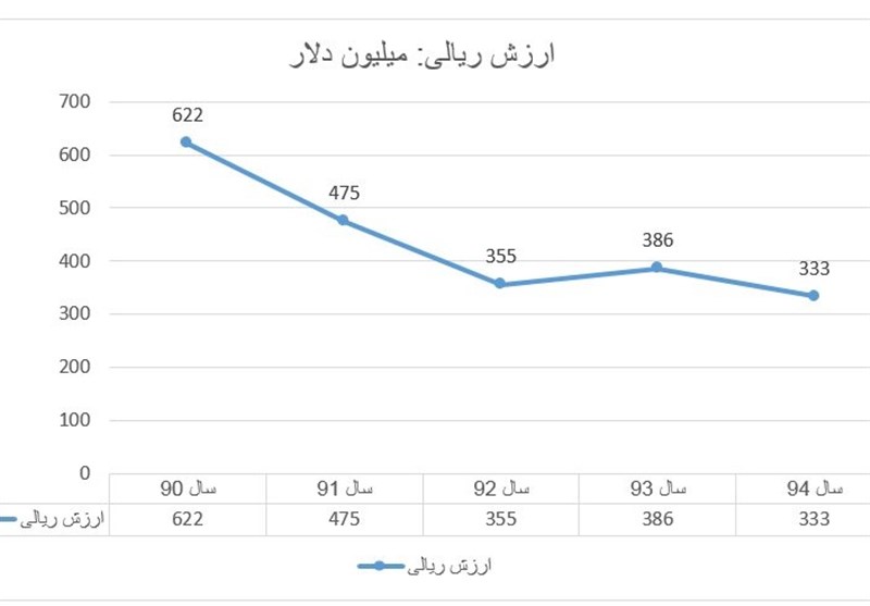 علاوه بر آن آمار رسمی مرکز توسعه تجارت نشان میدهد که روند صادرات این صنعت در 5 سال گذشته هم به لحاظ وزن و هم ارزش ریالی روند رو به رشدی نداشته است.