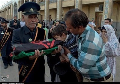 در این مراسم  که با حضور مسئولان و خادمین حضرت احمد بن موسی (ع) و قرائت صلوات خاصه و مداحی ذاکران اهل بیت (ع) برگزار شد، پرچم سبز بارگاه حضرت شاهچراغ (ع) و  حرم مطهر حضرت سید میر محمد (ع) با پرچم عزا عوض شد.