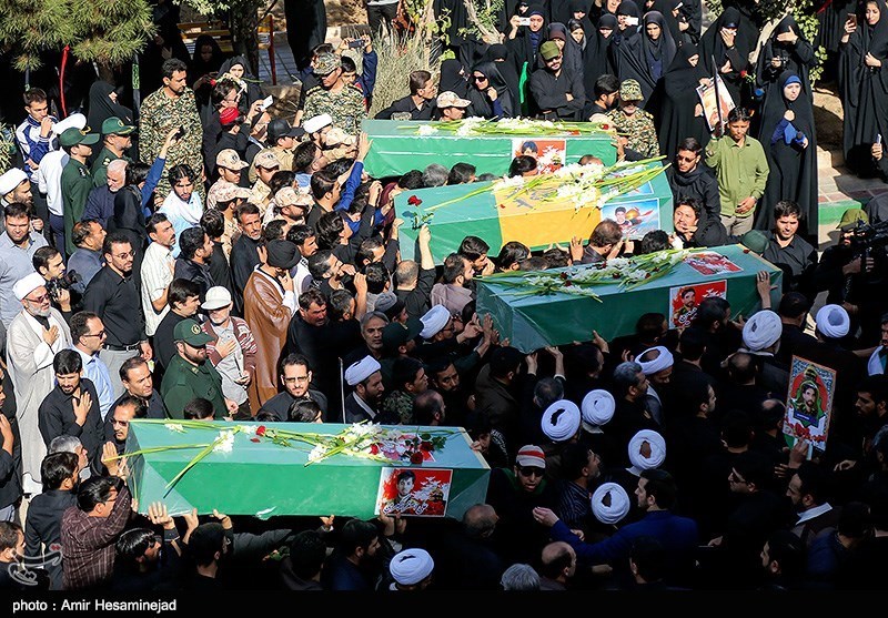 اقامه نماز میت بهوسیله آیتالله حسین نوری همدانی از مراجع عظام تقلید برگزار شد و پیکرهای پاک و مطهر این شهدا که از تیپ زینبیون و فاطمیون بودند بر دوش مردم قرار گرفت و برای خاکسپاری به آرامستان بهشت معصومه(س) قم منتقل شد.