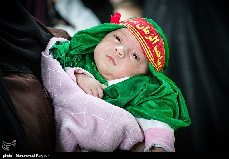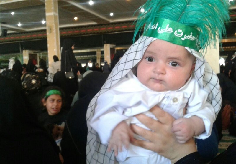 مادران چه عاشقانه فرزندان شیرخوار خود را در آغوش گرفتهاند و غرق در شعف هستند که در مجلس سوگواری دردانه امام حسین(ع) شرکت کردهاند و افتخار میکنند لباس سرباز لبتشنه ششماهه حسین(ع) که با تیر جفای حرمله گلویش چاکچاک شد را بر تن فرزندان خود کردهاند.