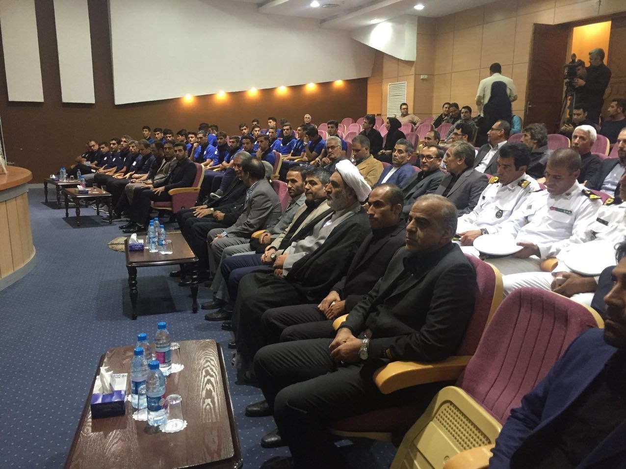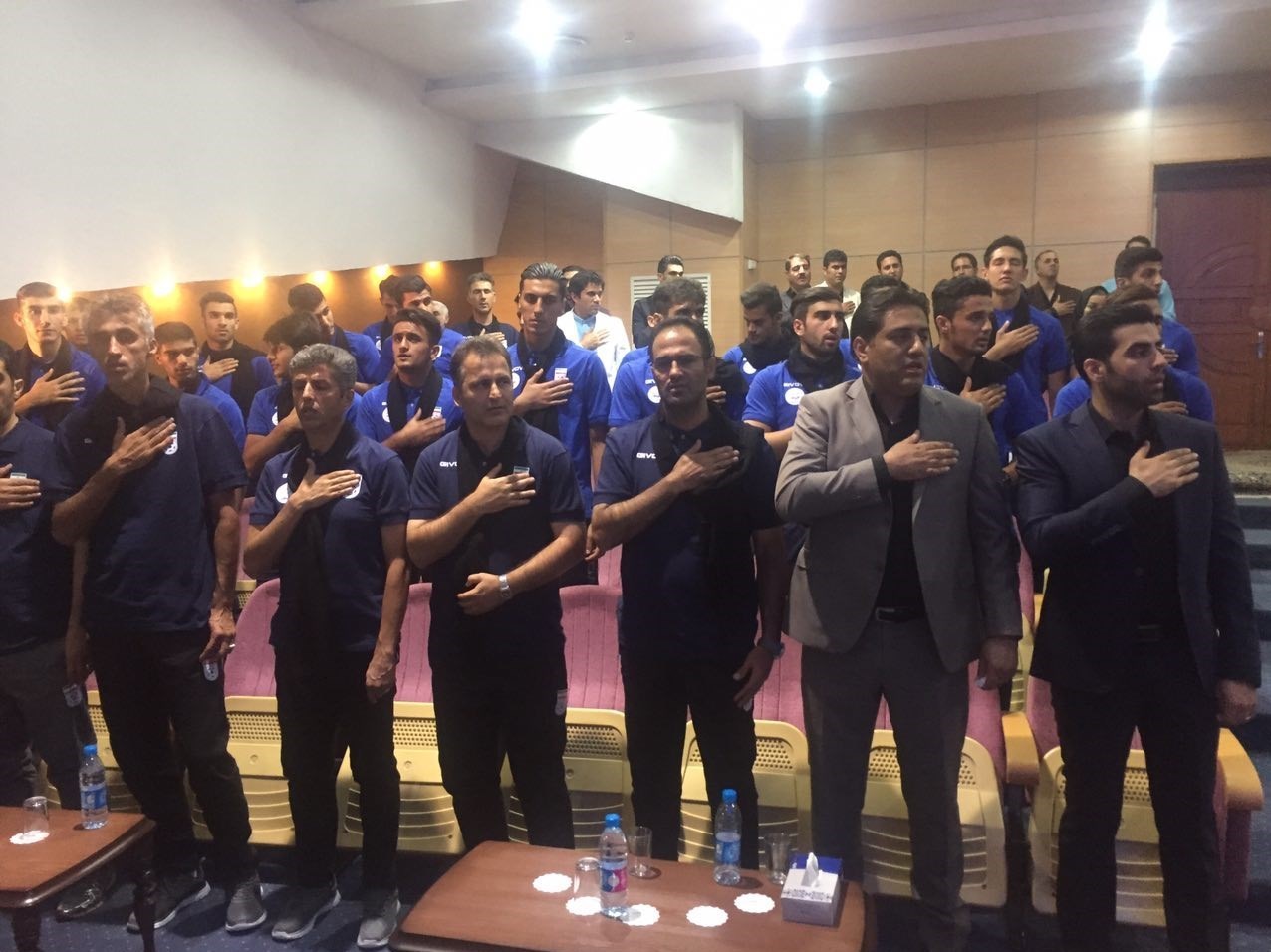 * اعضای تیم جوانان با پیراهنهایی که مربوط به اسپانسر جدید تیم ملی یعنی جیووا است، وارد سالن شدند.