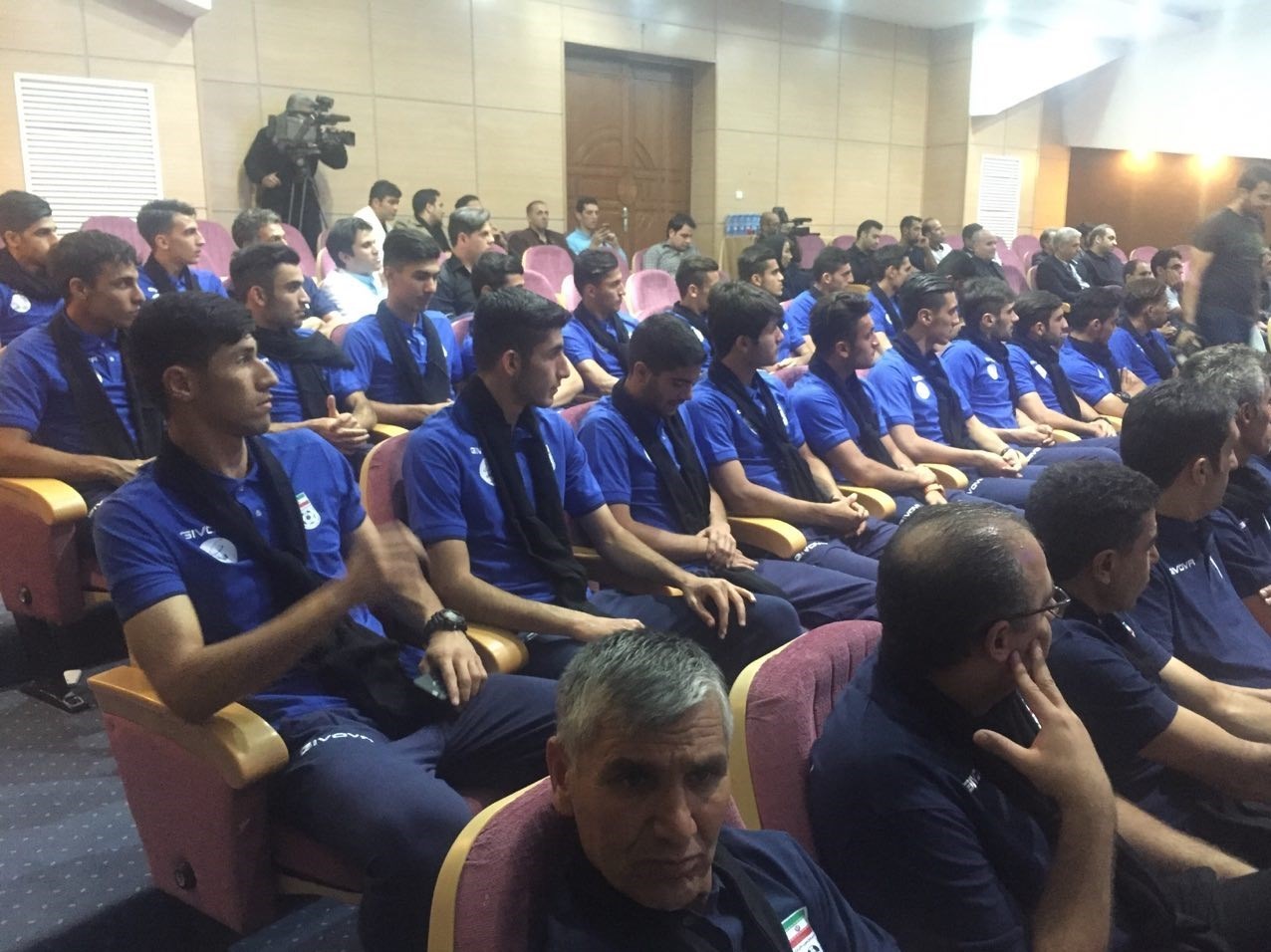 * همچنین ملیپوشان جوان کشورمان با یک شال سیاه در مراسم حاضر شدند.