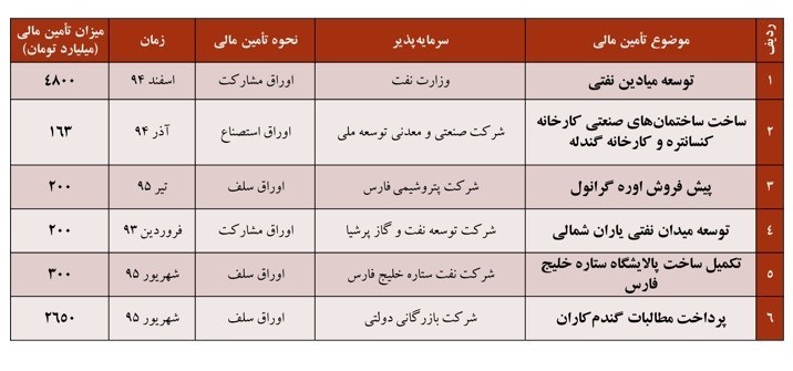 نمونههایی از تأمین منابع مالی مورد نیاز در طرحها با استفاده از ابزارهای بازار سرمایه