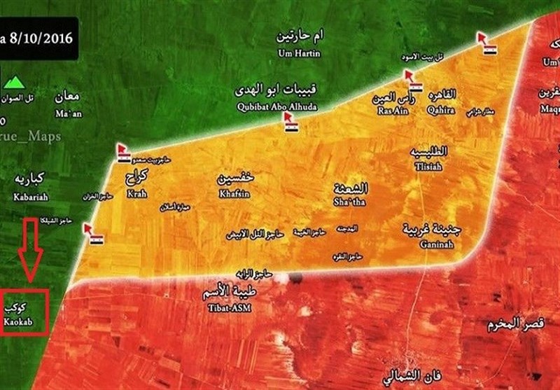 به گزارش خبرنگار خبرگزاری تسنیم از دمشق، ارتش سوریه بعد از درگیری سنگین با تروربستها کنترل کامل روستای کوکب واقع در حومه شمالی حماه را به دست گرفت.
