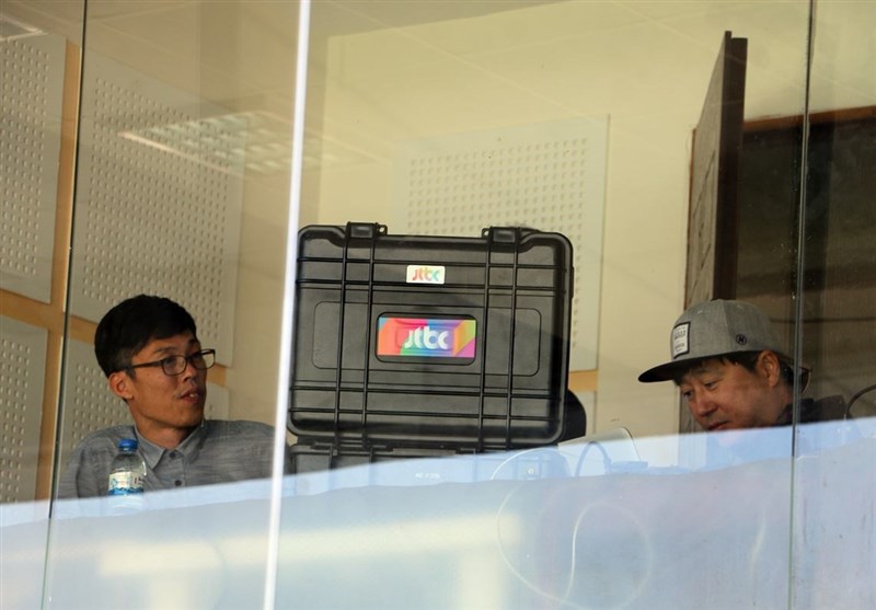 * گزارشگران کرهای جایگاه رادیویی را که در ورزشگاه قرار دارد و برای رادیو کشورمان است، گرفتهاند و گویا قرار است به صورت زنده از ورزشگاه بازی را برای شبکههای کرهای گزارش کنند.