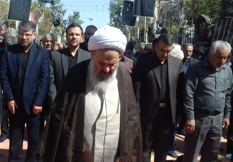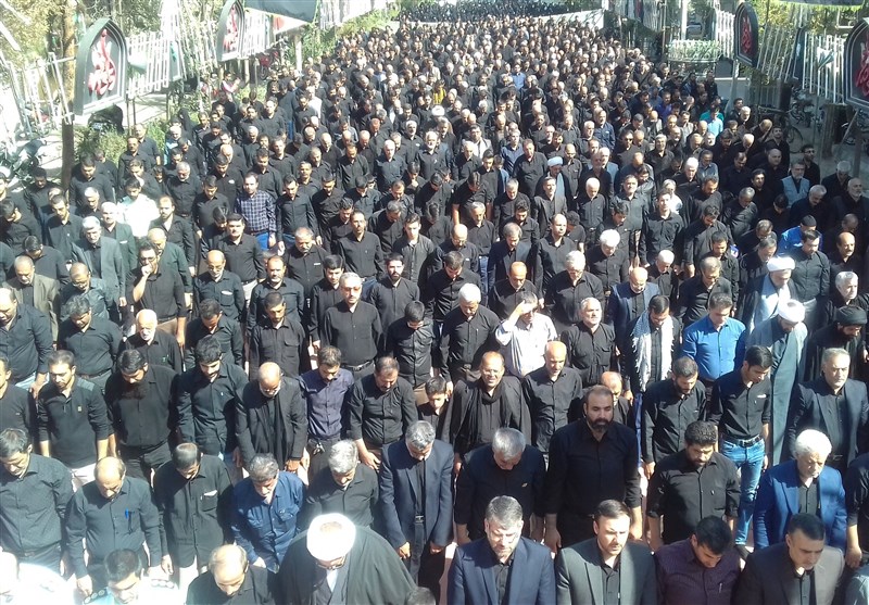 پس از اقامه عزا و ذکر مصیبت توسط مداح اهل بیت(ع)، نماز ظهر عاشورا به امامت آیتالله عبدالنبی نمازی برگزار شد.