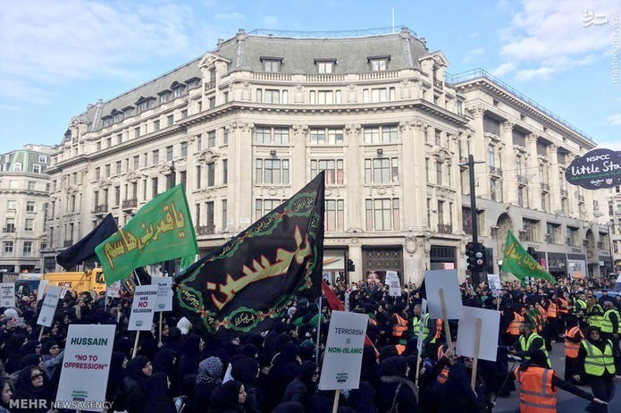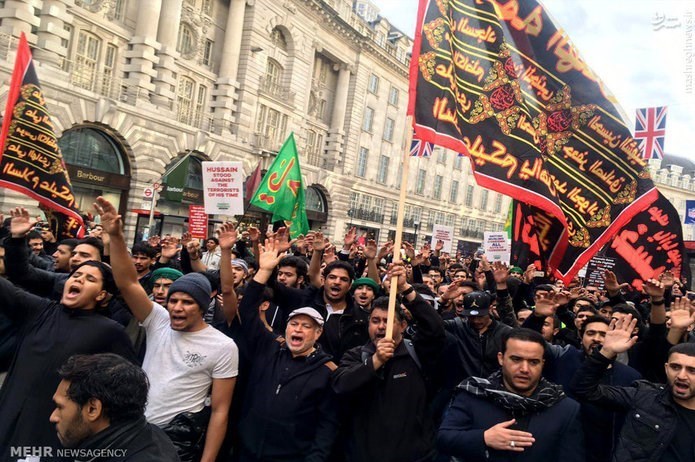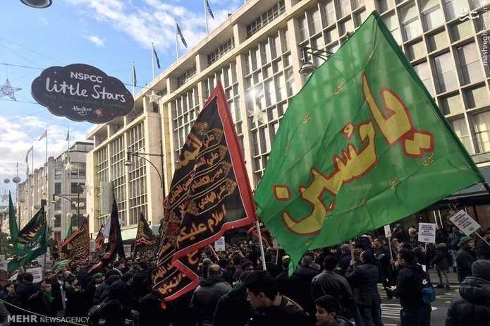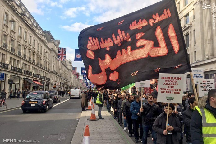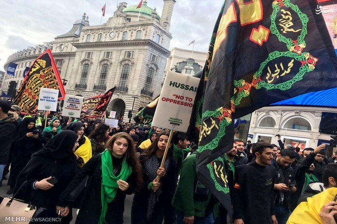 مراسم عزاداری روز عاشورای حسینی از ساعت ساعت ١٣ روز چهارشنبه ١٢ اکتبر از خیابان آکسفورد لندن شروع شد و عزاداران پس از عبور از خیابان اصلی لندن خود را به داونینگ استریت (دفتر نخست وزیر) رساندند. از نکات جالب توجه میتوان به حضور هزاران نفر از مسلمانان