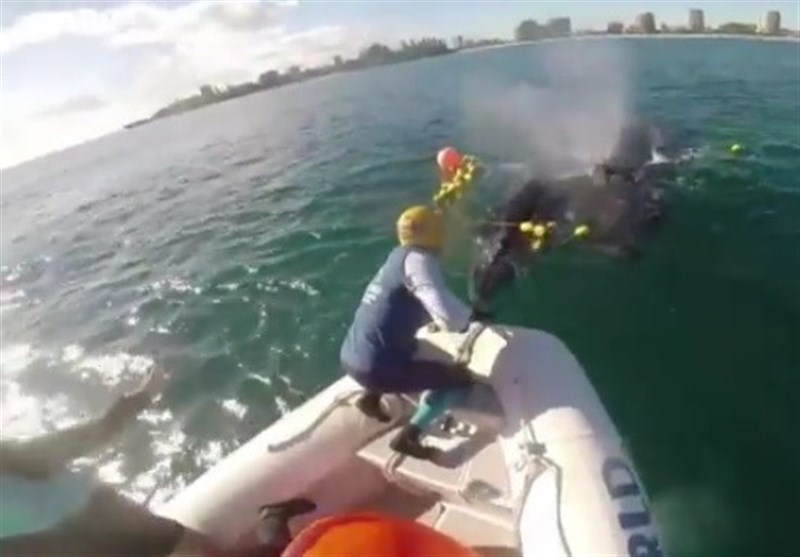 بر اساس گزارش گاردین،محیطبانان استرالیایی در سواحل کوئینزلند این گوساله و مادرش را در حالی پیدا کردند که گوساله نهنگ در تور ماهیگیری به دام افتاده بود.