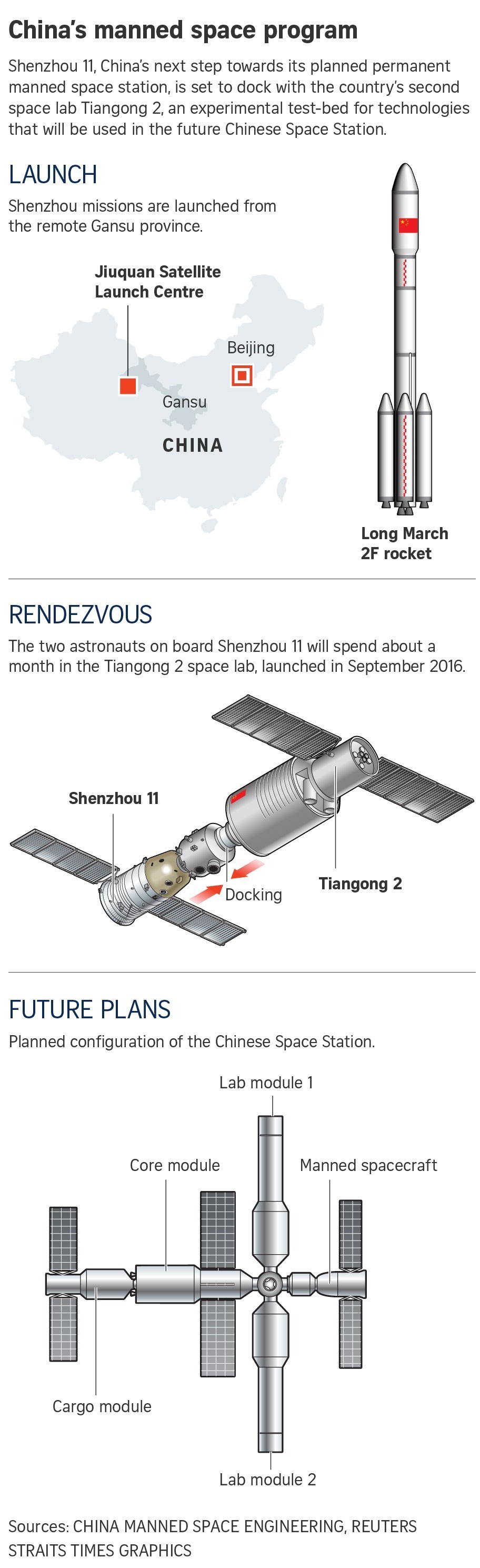 به گفته مقامات چینی، قرار است این دو فضانورد 30 روز را در ایستگاه فضایی «تیانگونگ 2» (Tiangong) سپری کنند تا توانایی این ایستگاه برای استقرار طولانی‌مدت انسان در فضا مورد آزمایش قرار گیرد.