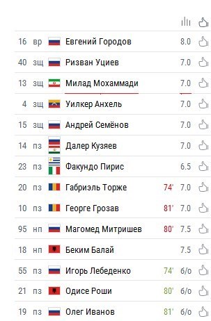 نمره خوب میلاد محمدی در هفته دهم لیگ برتر روسیه + عکس