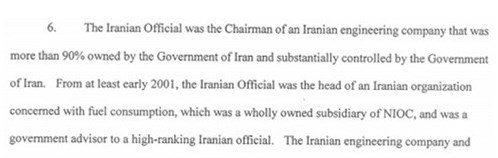4 ــ سند فوق، توافقنامه پیگرد قانونی مدت‌دار (تعلیقی)، نشانی مقام ایرانی خائن را دقیق‌تر ارائه می‌کند: «مقام ایرانی از اوایل 2001 رئیس یک سازمان کاملاً دولتی تابع شرکت ملی نفت ایران مربوط به مصرف سوخت بود» (صفحه 2 از پیوست A):