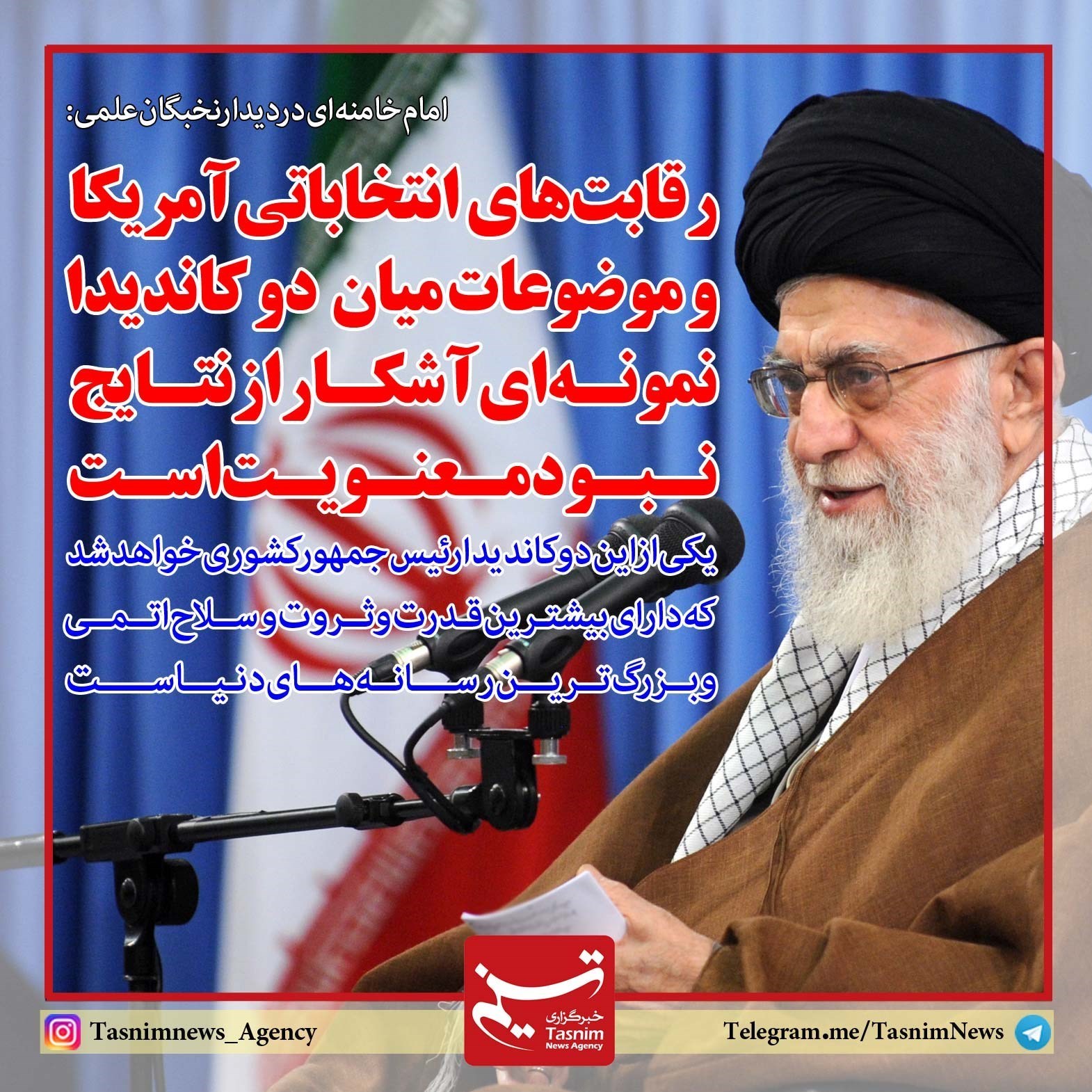 فوتوتیتر/امام خامنه ای:رقابت های انتخاباتی آمریکا و موضوعات میان دو کاندیدا نمونه ای آشکار از نتایج نبود معنویت است