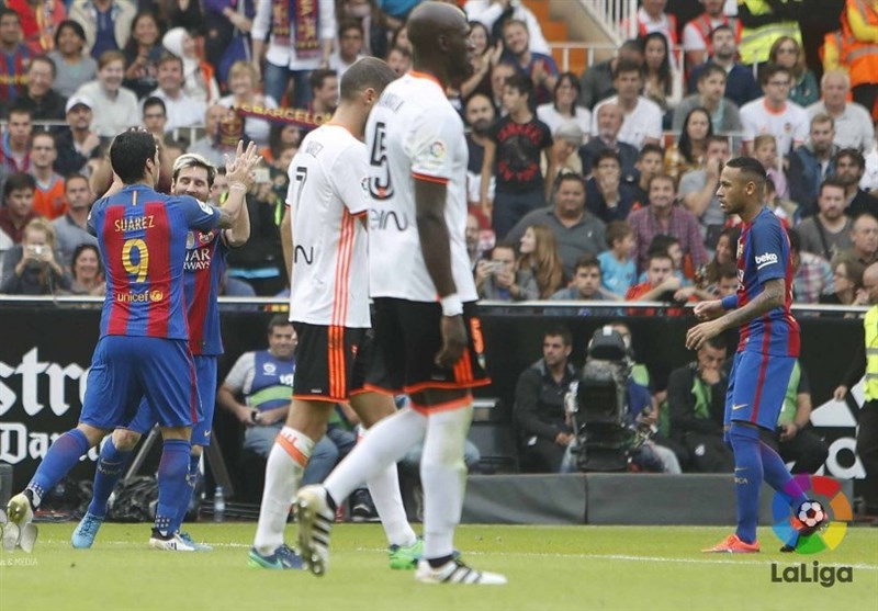 به گزارش خبرگزاری تسنیم، در مهمترین بازی از هفته نهم لالیگا امشب (شنبه) تیمهای فوتبال بارسلونا و والنسیا در ورزشگاه مستایا به مصاف هم رفتند که این بازی با پیروزی 3 بر 2 کاتالانها خاتمه یافت.