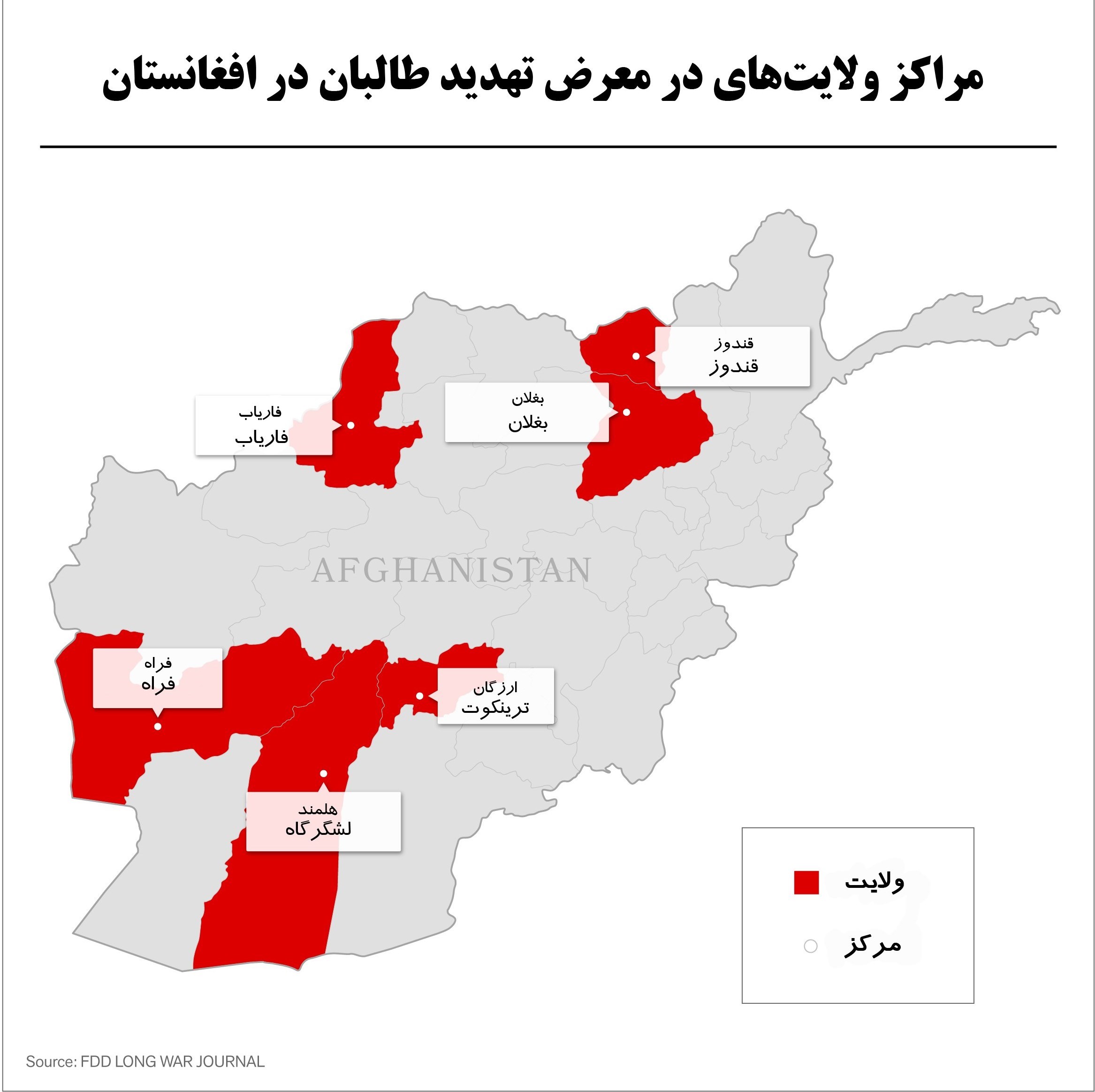 بر اساس نوشته «لانگ وار ژورنال»، در حال حاضر 6 ولایت از 34 ولایت افغانستان در معرض تهدید حملات طالبان است.