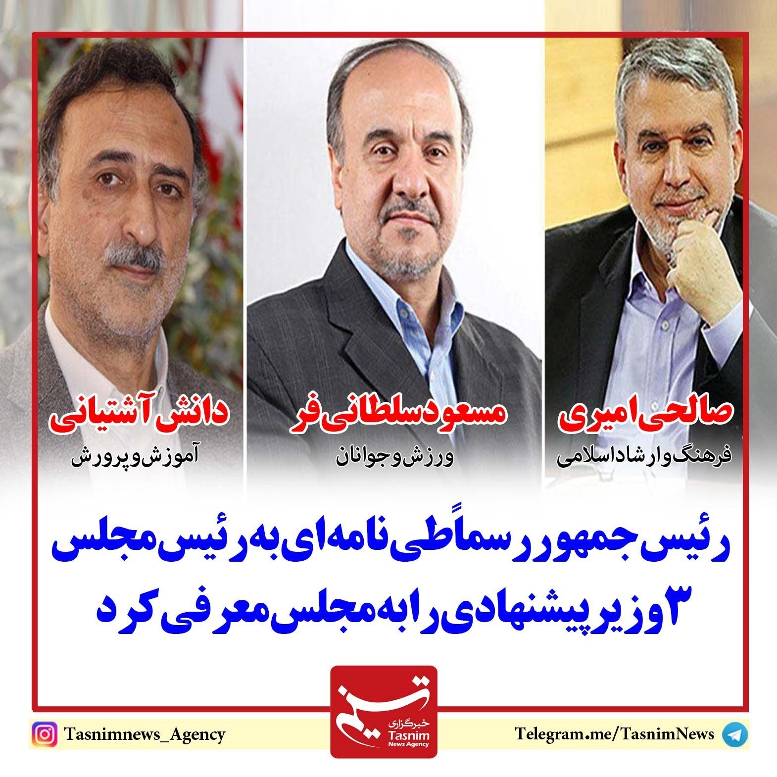 رئیس‌جمهور طی نامه‌ای به رئیس مجلس، وزرای پیشنهادی وزارتخانه‌های فرهنگ و ارشاد اسلامی، ورزش و جوانان و آموزش و پروش را معرفی کرد.