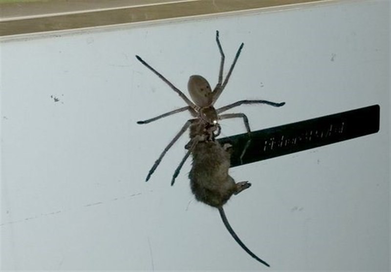 فیلم/ عنکبوتی غول‌پیکر موش مرده را به لانه می‌برد