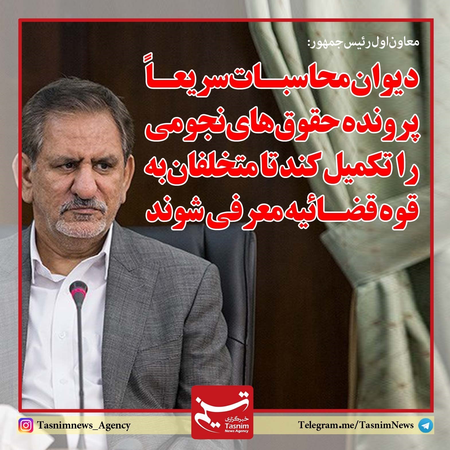فوتوتیتر/جهانگیری:دیوان محاسبات سریعا پرونده حقوق‌های نجومی را تکمیل کند تا متخلفان به قوه قضائیه معرفی شوند