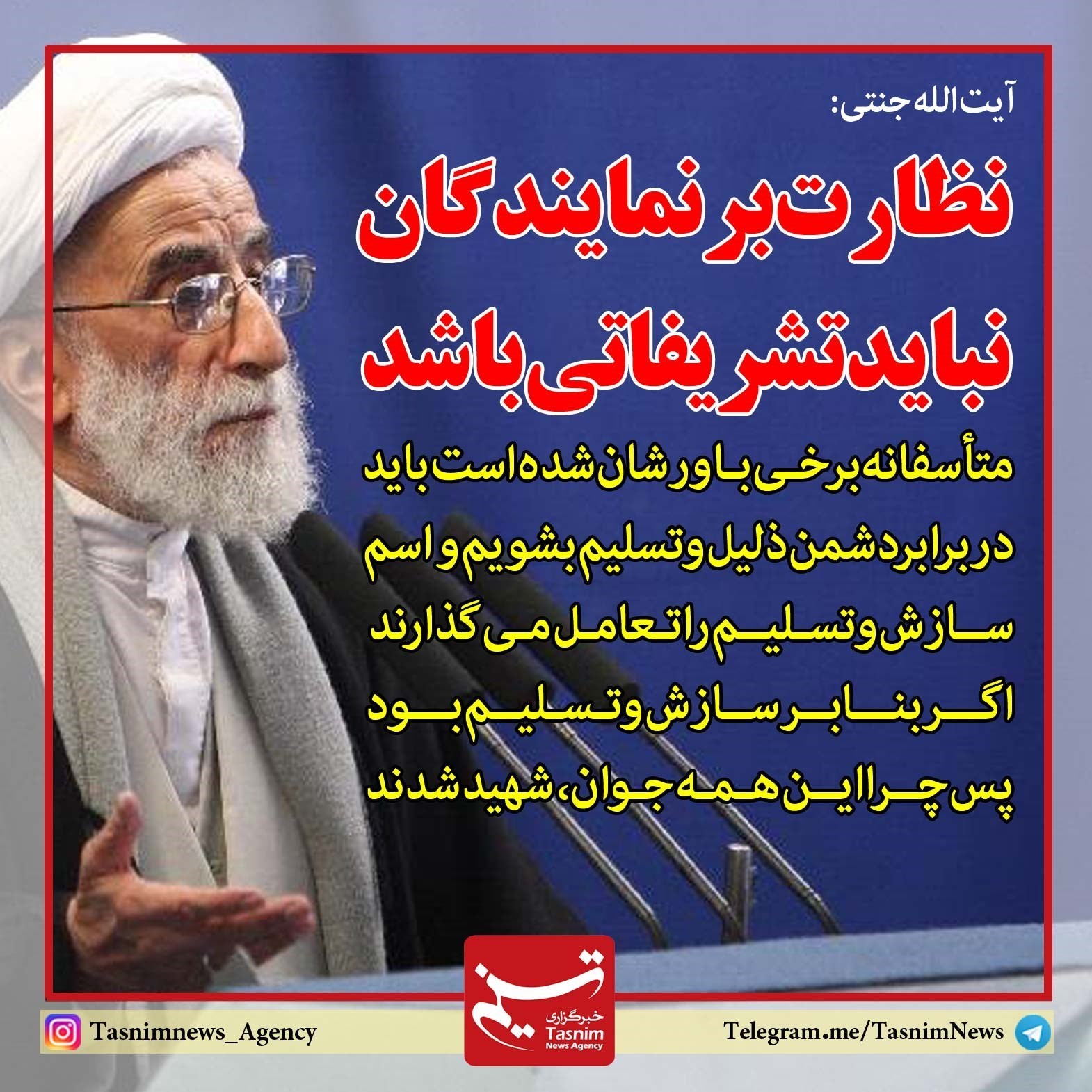 فوتوتیتر/آیت الله جنتی: نظارت بر نمایندگان نباید تشریفاتی باشد