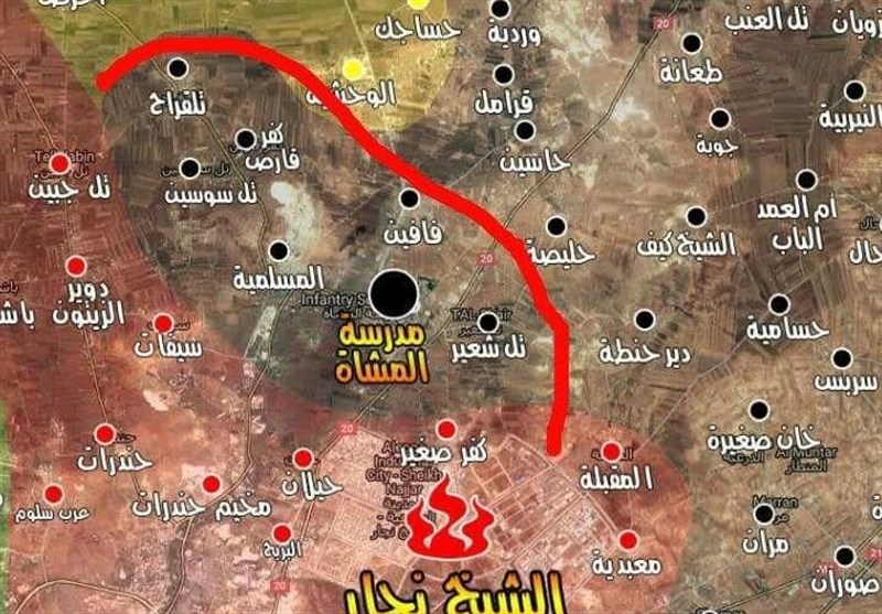 به گزارش خبرنگار خبرگزاری تسنیم از سوریه، یک منبع نظامی سوری گفت یگانهای مختلف ارتش سوریه با همکاری نیروهای پشتیبان توانستند امنیت را به مناطق تل شعیر، مدرسه المشاه، فافین، کفرقارص و تل سسین در حومه شمالی حلب در جبههای به طول 6 کیلومتر و عمق 14 کیلومتر بازگردانند که در نتیجه آن تلفات و خسارتهای سنگینی به گروههای تروریستی وارد شد.