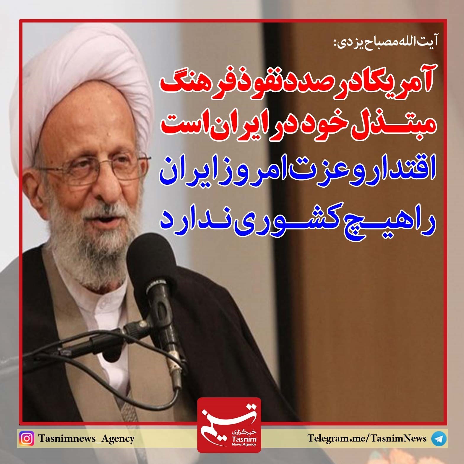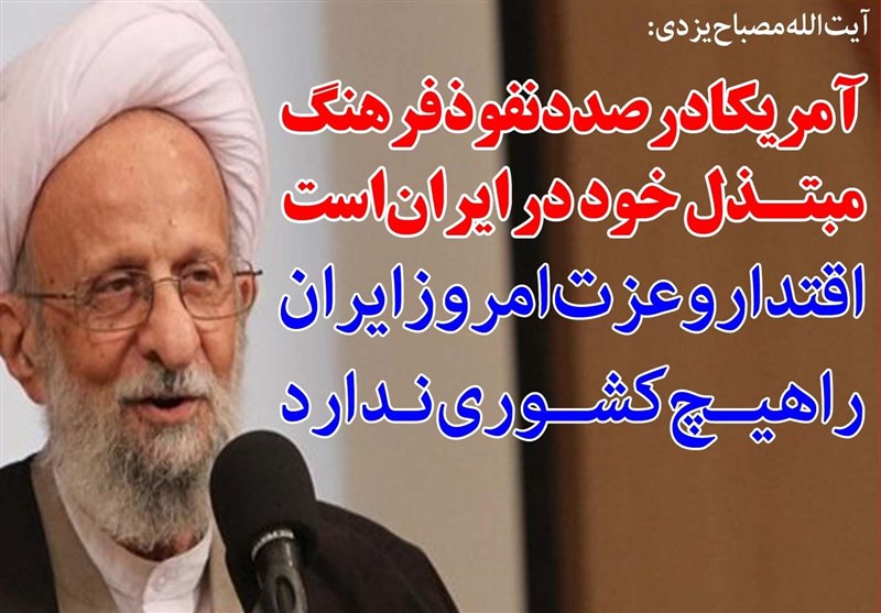 فوتوتیتر/آیت الله مصباح یزدی:آمریکا درصدد نفوذ فرهنگ مبتذل خود در ایران است