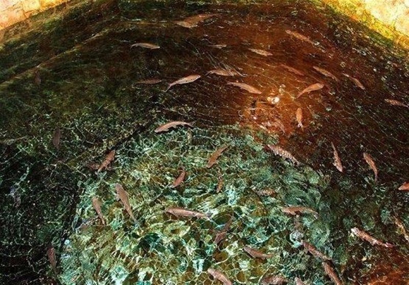 در عمق 10 مترى صحن آرامگاه، قناتى وجود دارد که آب آن داراى مواد گوگردى و جیوه است و آب این قنات به درون حوضى که آن را حوض ماهى مىنامند و در زیرزمین جریان دارد، میریزد.