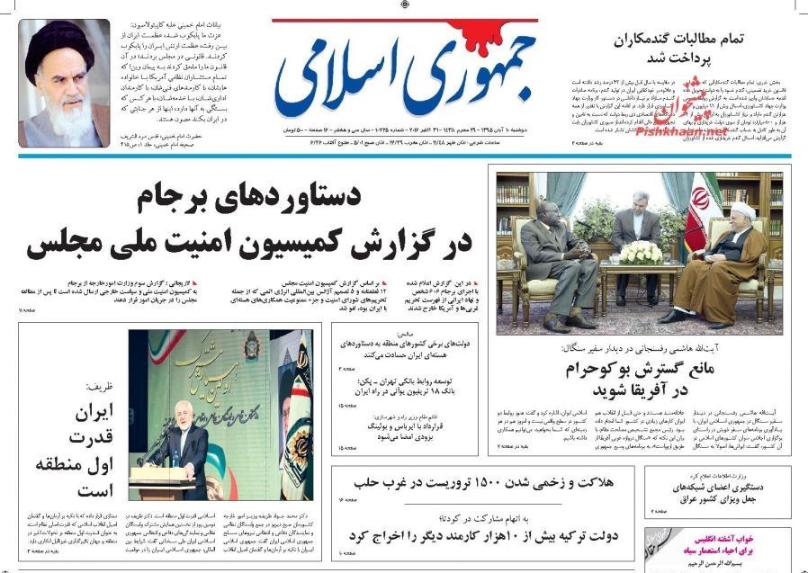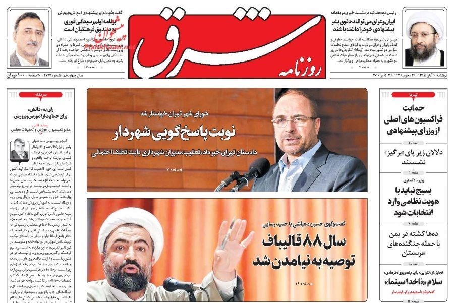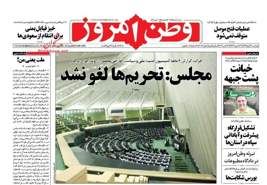 تصاویر صفحه اول روزنامه‌های دوشنبه 10 آبان
