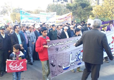 به گزارش خبرگزاری تسنیم از کرج، بار دیگر شعار "مرگ بر استکبار" و "مرگ بر آمریکا" در استان البرز در راهپیمایی 13 آبان طنینانداز شد.