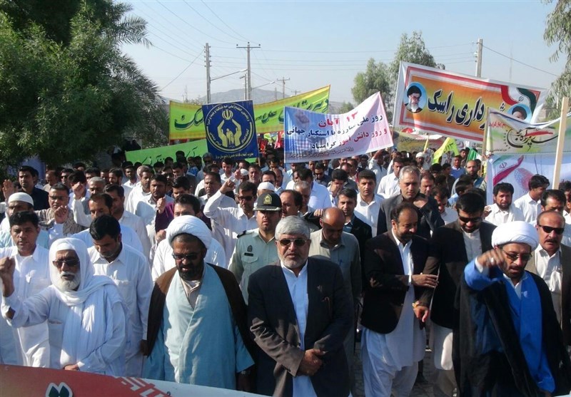امروز 13 آبان روز ملی مبارزه با استکبار است و اهل سنت منطقه بلوچستان همگام با مردم ایران اسلامی با عشق به امام راحل و لبیک گفتن به ندای رهبر معظم انقلاب با حضور پرشور خود ضمن گرامیداشت این روز، خشم و انزجار خود را از استکبار جهانی به ویژه آمریکا و صهیونیسم غاصب اعلام کردند و مشتی آهنین بر دهان یاوه گویان زدند.