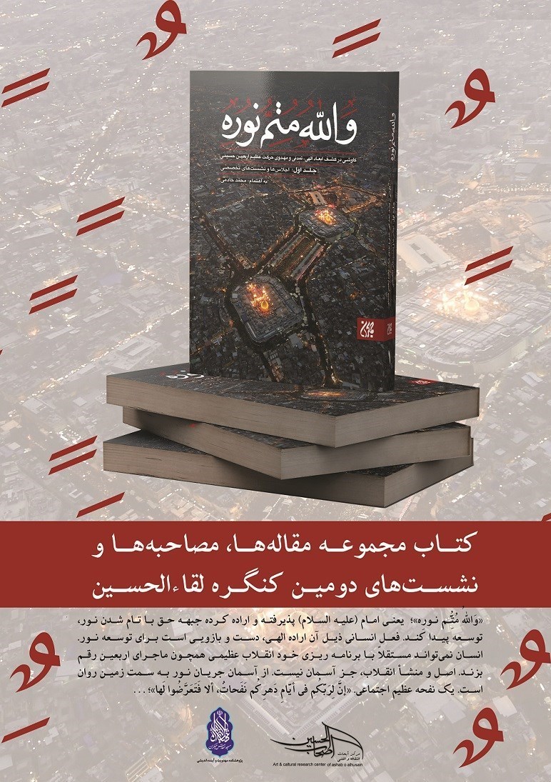 نام کتاب بر گرفته از آیه8 سوره صف «و اللّهُ مُتِمّ نورِه؛کاوشی در ابعاد الهی، تمدنی و مهدوی حرکت اربعین» و در سه جلد است. این کتاب حاصل همت مشترک مؤسسه مطالعات راهبردی و فرهنگی اصحاب الحسین علیهالسلام، پژوهشکده مهدویت و آیندهاندیشی مسجد مقدس جمکران در برگزاری دومین کنگره بین المللی لقاءالحسین علیهالاسلام است. جلد اول درباره اجلاسیه و نشستهای تخصصی، جلد دوم دباره مجموعه مصاحبههای علمی، جلد سوم برگزیده مقالات و یادداشتهای کنگره بین المللی لقاءالحسین علیهالسلام و در سه جلد است که سال گذشته چاپ محدود شده بود و به صورت ویژهنامه بود، اما امسال به صورت کتاب علمی و به صورت کاملتر و مستقل چاپ شده است. بخشی از محتواهای کتاب برای عموم فرهیختگان و علاقهمندان به زیارت اربعین قابل استفاده است. کتاب طوری نیست که در سطوح خارج حوزه مورد توجه قرار گیرد. ان شاءالله یک جلدِ مستقل به زبان عربی و به صورت گزیدهای قرار است چاپ شود. همکاران ما بنا دارند خیلی سریع ظرفیتی فراهم کنند تا بتواند قبل از اعزام و آغاز سفر مشتاقان اربعین، از طریق درگاه فروش الکترونیک سایت کتاب جمکران و یا از طرق سادهتر به دست مشتاقان برسد طوری که توزیع مردمی صورت بگیرد.