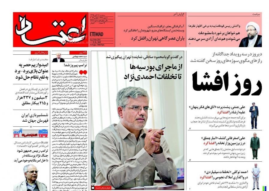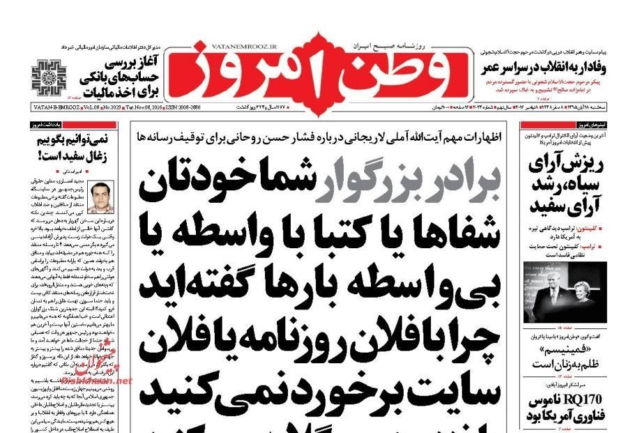 تصاویر صفحه اول روزنامه‌های سه‌شنبه 18 آبان