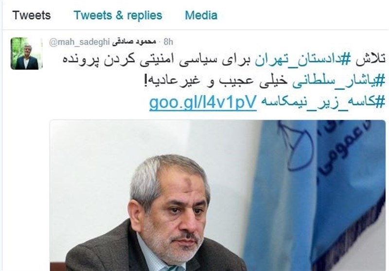 نماینده اصلاح‌طلب تهران که تنها چند روز بعد از انتشار اسناد توسط یاشار سلطانی با تأکید بر نداشتن قضاوت زودهنگام، از تحقیق و تفحص در شهرداری براساس اسناد فراوانی که در اختیار دارند خبر داده بود، شب گذشته بعد از اینکه اطلاعیه دادستانی در زمینه نتیجه جدید تحقیقات قضایی در پرونده یاشار سلطانی اعلام شد، با انتشار متنی در توئیتر خود گفت: تلاش دادستان تهران برای سیاسی‌ امنیتی کردن پرونده یاشار سلطانی خیلی عجیب و غیرعادی است.