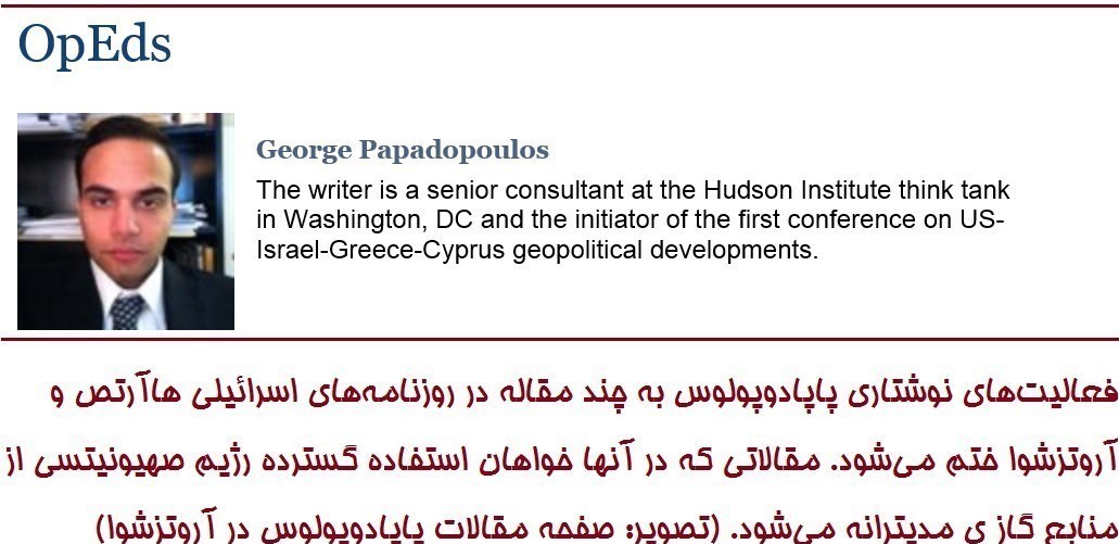 اثر چندانی از پاپادوپولوس در حوزه نوشتاری در دست نیست. وی یک مقاله برای روزنامه اسرائیلی هاآرتص نوشته و سه مقاله نیز برای آروتزشوا، یک وبسایت اسرائیلی، به نگارش درآورده است. تمام مطالب وی در این مقالات را میتوان در جمله زیر خلاصه کرد: