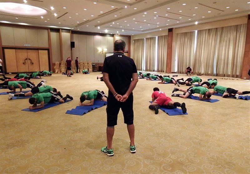 تمرین امروز صبح با استفاده از توپ اسفنجی، رول و تشک و با نظارت کارلوس کیروش انجام شد و قرار است تیم ملی امروز عصر روی چمن تمرین کند.